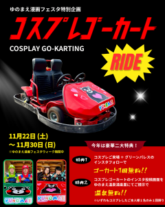 ゆのまえグリーンパレスでは、ゆのまえ漫画フェスタ特別企画として、『コスプレゴーカート RIDE!』を開催します🚗🏁