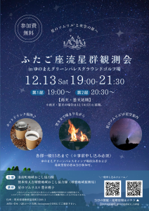 ゆのまえグリーンパレスグラウンドゴルフ場の広い芝生の上には、満天の星空が広がります。